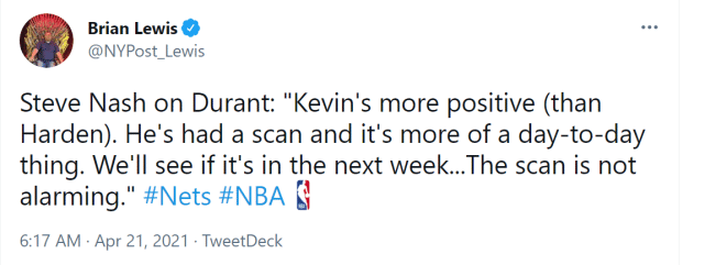 杜兰特最新伤情出炉!情况比哈登乐观,纳什:他有可能下周复出