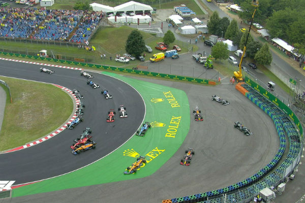 五盏红灯熄灭,匈牙利大奖赛正式开赛。发车之后,博塔斯发车起步很差,被维斯塔潘等车手超越,而就在第一弯,赛场上风云突变,博塔斯追尾撞到了诺里斯,诺里斯又撞到了维斯塔潘,博塔斯在滑出赛道时,又撞到了佩雷兹。随后,斯托尔、勒克莱尔、里卡多、诺里斯等车手也陷入到了此次连环撞车中。