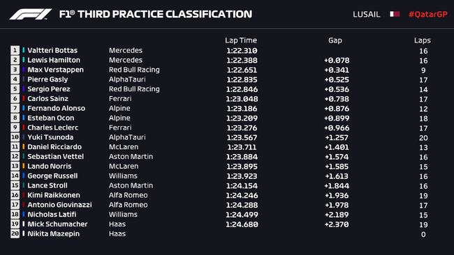 - 【录像】【腾讯】2021F1卡塔尔大奖赛第三次练习赛 圈速2021-11-21 00:38:20