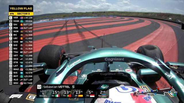 阿斯顿·马丁车队的维特尔在过弯时出现打滑,他的赛车冲出赛道撞到了护墙,导致赛车后部受损,引发短暂赛段黄旗,随后他将赛车开回了维修区。