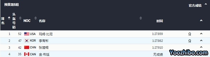 第五组中,张楚桐代表出战。开始阶段张楚桐位于第三位,随后张楚桐快速跟上,来到领先位置。但是最后时间位于领先位置的科尼亚·佐菲娅出现失误,影响到了紧随其后的张楚桐。最终张楚桐以1:27.910位于小组第三名成功晋级到四分之一决赛。
