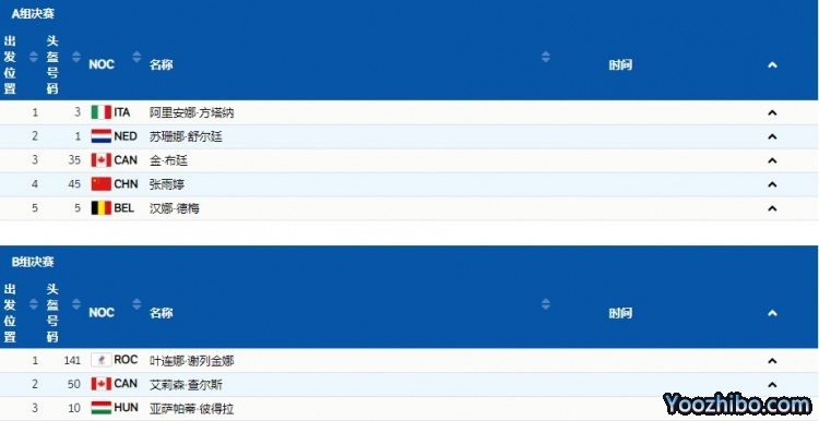 第2组舒尔廷一骑绝尘排名第一,排名第二的汉娜-德梅发生失误趔趄之后摔倒,张雨婷最后以微弱的优势力压匈牙利选手彼得拉,最终排名第二,曲春雨被判犯规没有成绩。