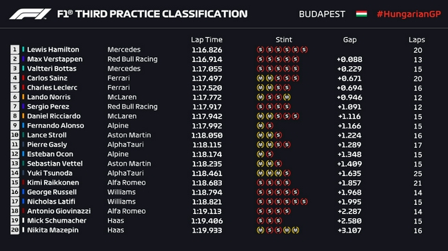 - 【录像】【腾讯】2021F1匈牙利大奖赛三练 数据2021-07-31 22:40:26