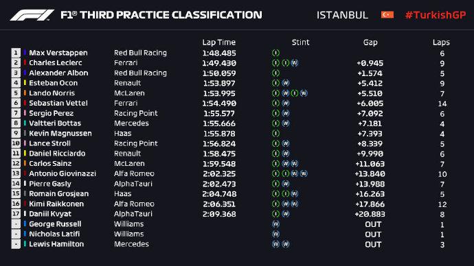 - 【录像】[腾讯] 2020F1土耳其大奖赛第三次练习赛 圈速2020-11-15 09:08:25
