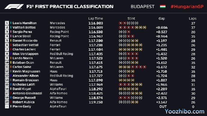 - 【录像】[腾讯视频]2020F1匈牙利大奖赛第一次练习赛 圈速回放2020-07-17 23:51:35