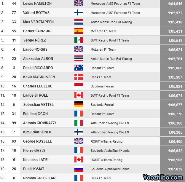 - 【录像】[腾讯]2020F1奥地利大奖赛第一次练习赛 圈速回放2020-07-03 22:05:16