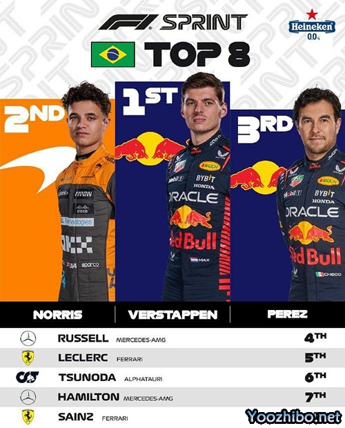 24直播网讯 北京时间11月5日,2023赛季F1巴西大奖赛冲刺赛在英特拉格斯赛道举行,最终维斯塔拿下冲刺赛的胜利,诺里斯和佩雷兹分别列第二和第三,第四到第八名依次为:拉塞尔、勒克莱尔、角田、汉密尔顿和塞恩斯。