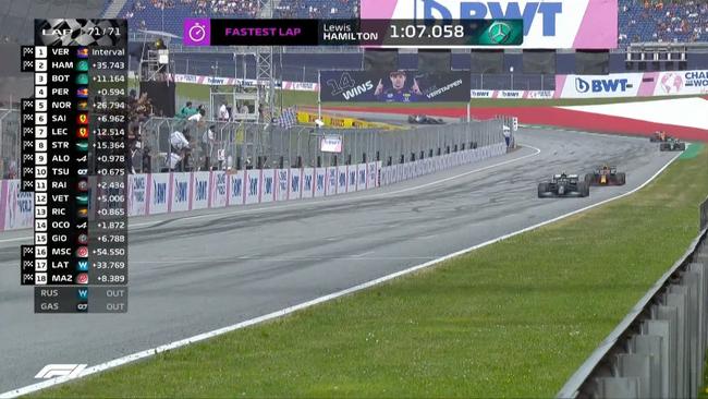 第71圈结束,格子旗挥动。杆位起步的维斯塔潘以1小时22分18秒925顺利收获个人赛季第4冠,也连续两场比赛拿下分站冠军。汉密尔顿收获亚军并刷新最快单圈,博塔斯利用进站超越佩雷兹,拿到第三。P4-P10分别为:佩雷兹、诺里斯、塞恩斯、勒克莱尔、斯特罗尔、阿隆索和角田裕毅。