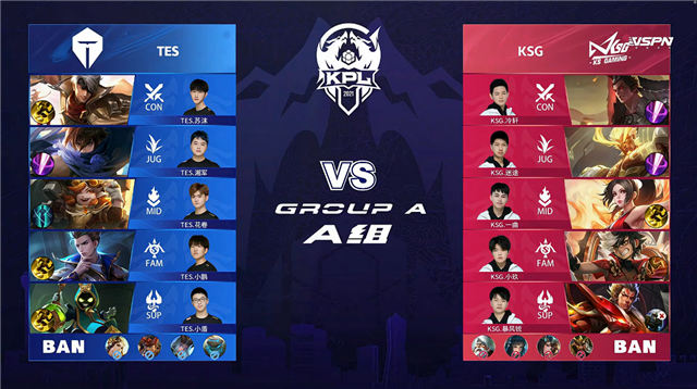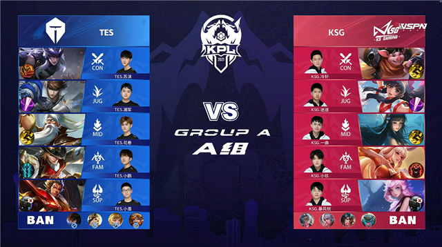 开局KSG入侵敌方蓝BUFF野区未果。1分09秒TES拿下中路河道之灵。2分57秒TES上路击杀吕布拿到一血。4分53秒下路团战TES打出1换3。6分25秒TES拿下暴君。7分34秒野区团战KSG打出2换3。7分54秒双方中路1换1。8分40秒KSG摧毁敌方中路外塔。8分59秒KSG拿下主宰。9分20秒中路团战KSG打出0换2,9分34秒KSG摧毁敌方中路二塔。9分43秒中路团战KSG击杀狄仁杰。9分54秒KSG摧毁敌方中路高地塔。10分37秒KSG拿下暗影主宰。10分52秒上路团战KSG打出0换3。11分15秒KSG团灭对手摧毁水晶拿下比赛。
