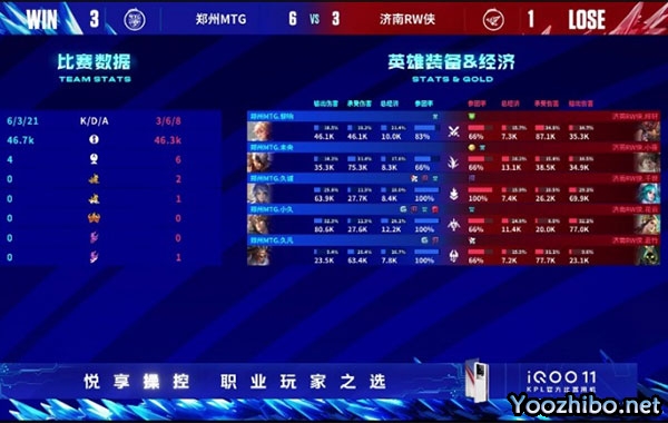 前期双方基本平稳发育,四分半中路郑州MTG多人集结,郑州MTG丶久诚 西施给控拉回周瑜,配合队友伤害拿到一血,双方打出一换一。六分钟久诚西施再出节奏,帮助队伍拿到两个人头,顺势拔掉中路一塔。
