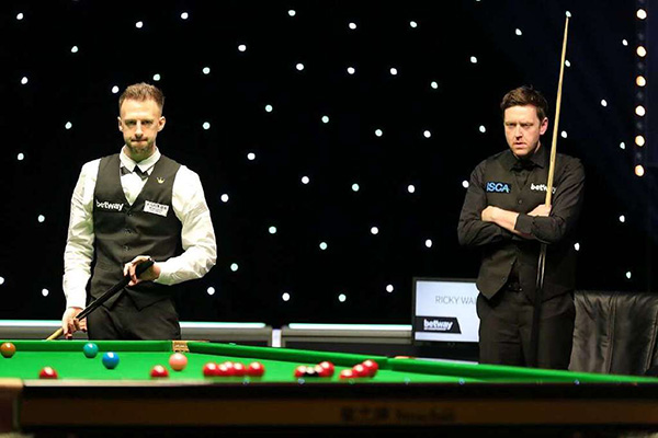 下半场第五局,沃顿终于有所回应,打出一杆70分以75-5追上一局。第六局特鲁姆普打进两颗红球都未能连接上彩球,沃顿多次上手,以70-2再扳一局。第七局,特鲁姆普稳住局面,以92-8获胜5-2领先拿到赛点。第八局沃顿再追一局,以73-10拿下给对手施压。第九局双方都有机会胜出,特鲁姆普凭借最后一颗红球的出色防守,把握住机会以65-38取胜,总比分6-3淘汰沃顿打进八强。