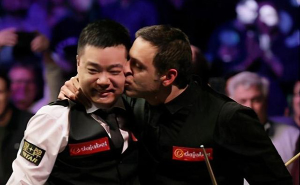 与前四轮不同,1/4决赛采用的是9局5胜制。“火箭”开场后状态明显慢热,前两局出现多次失误,而丁俊晖则表现出色,连续打出单杆121分和87分的制胜杆,而且进攻行云流水,似乎怎么打怎么有。然而,第三局,丁俊晖在红球未传进后,状态突然下滑,此后失误频频,甚至关键时刻出现母球摔袋的情况,而奥沙利文则越打状态越佳,最终连扳5局,逆转获胜。