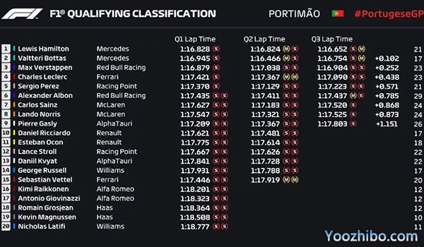 - 【录像】[腾讯] 2020F1葡萄牙大奖赛排位赛 圈速2020-10-24 22:49:03