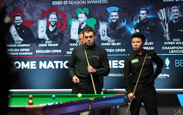 第一局,周跃龙沉底防守,奥沙利文推顶袋打进上手,奥沙利文单杆67分,超分红球不进;周跃龙传球不进,奥沙利文单杆28分拿下第一局。第二局,周跃龙防守失误,奥沙利文单杆64分,奥沙利文红球失误;周跃龙打进红球,结果蓝球不进;奥沙利文打进一颗红球超分;奥沙利文长台上手,单杆28分拿下第二局。奥沙利文2-0领先。