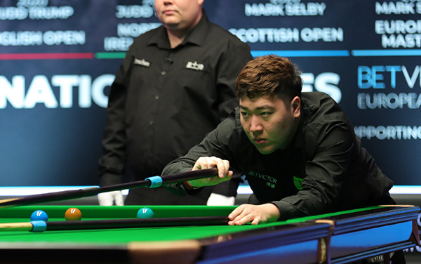 第三局比赛,颜丙涛继续保持良好的手感,进攻端如行云流水一般,单杆轰出113分,以125-0零封肖国栋,局分2-1反超。第四局,颜丙涛单杆打出65分进攻中止,肖国栋耐心追分,但进攻出现失误,颜丙涛以90-37拿下,局分3-1拿到赛点。