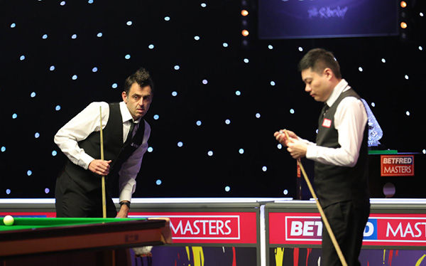 首局丁俊晖迅速找到手感,充分上手后,打出一杆83分清光黄球,奥沙利文上场热身清台,丁俊晖以104-32先声夺人。第二局上来两人防守争夺,丁俊晖一杆连打带跑,将红球留在袋口。奥沙利文打进后咖啡球中袋失误,此后再进红球依然未能叫到彩球。丁俊晖长台打进后上手,围绕黑球和粉球连续进攻,单杆得到75分再下一局。