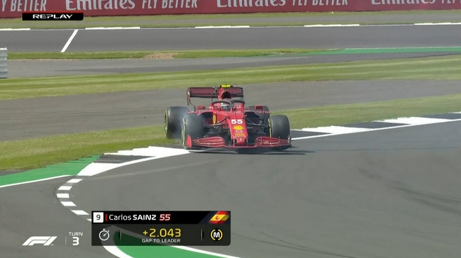 一练中,塞恩斯3号弯侧滑,引发短暂黄旗