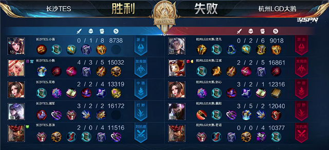 长沙TES禁用:大乔、镜、兰陵王、橘右京