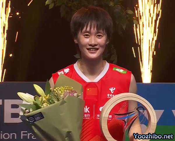 24直播网讯北京时间10月29日,2023年法国羽毛球公开赛女单决赛,陈雨菲对阵戴资颖,最终,陈雨菲连赢两局2-0夺冠,陈雨菲横扫戴资颖,真是霸气十足,陈雨菲连续两周夺冠(上周的丹麦公开赛也夺冠)。比分为21-17、22-20。