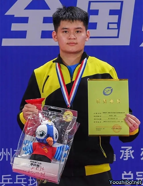 北京时间10月13日晚上,在江苏扬州举行的2023年全国乒乓球锦标赛决赛男单决赛中,海南队选手林诗栋以3比0战胜上海地产集团队选手周恺,获得冠军。比分为12-10、11-3、11-4。