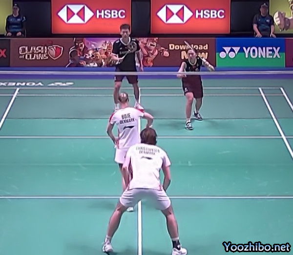 第一局,比赛中,蒋振邦/魏雅欣打得比较被动,始终被对手的大范围调动控制,防守比较吃力,失误较多,以19比21丢掉首局。