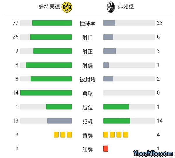 全场比赛结束,最终多特蒙德5-1击败十人弗赖堡。