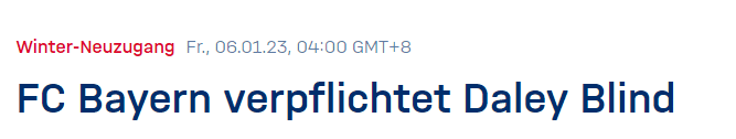 24直播网01月06日讯 拜仁官方宣布签下32岁荷兰后卫布林德,双方签约至赛季结束。