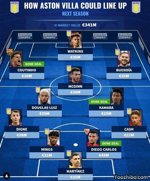 来源:24直播网05-28 17:0024直播网05月28日讯 近日,维拉在转会市场十分活跃,在2周内连续官宣3笔强援。对此,《转会市场》预测了他们下赛季的首发阵容。