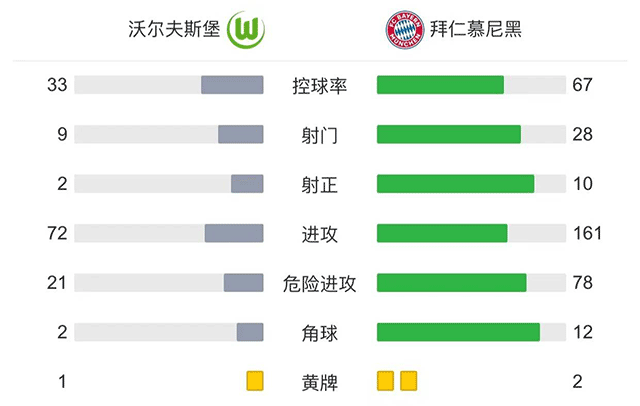 最终,沃尔夫斯堡2-2拜仁慕尼黑
