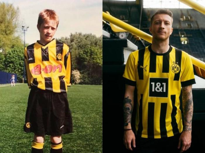 24直播网05月14日讯 2000年身穿多特球衣的罗伊斯异常青涩,而2022年的罗伊斯已经是队长和领袖。在哈兰德出走后,他依然选择留守。