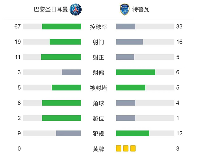 全场比赛结束,巴黎圣日耳曼4-3特鲁瓦。