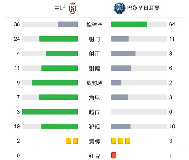 全场比赛结束,巴黎0-0和兰斯握手言和。